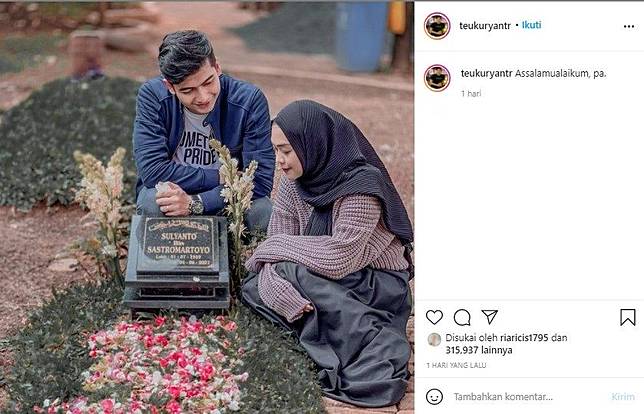 Berdasarkan unggahan foto Teuku Ryan, tampak Ria Ricis sedang menunduk menatap makam sang ayah, sementara Teuku Ryan ikut berjongkok di dekatnya.